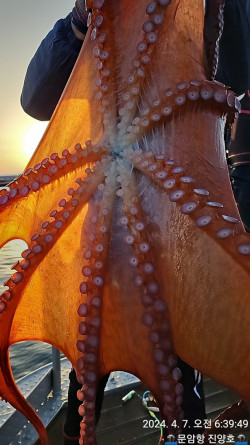 안녕하세요. 강원 고성 진양호 입니다.요 몇일 문어조황이 좋더니 오늘 대왕문어가 올라왔네요. 역시 대왕문어가 올라오니 분위기가 달라집니다. ^^조사님들 수고 많으셨습니다.내일은 대구출조 원하시는 조사님들을 위해왕대구 출조합니다. 날씨만 허락한다면 계속해서 출조하오니 조사님들 언제든 연락주세요.선장님폰 010-7917-9009 문의전화 010-9380-8929