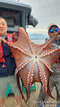 안녕하세요 진양호입니다.어제 조사님이 10키로 정도 되는 문어를 눈앞에서 놓쳐서 무지 아쉬운 마음에, 떨군 대왕문어 잡으러 오시라고 밴드에 글을 올렸는데 오늘 10키로 넘는 대왕문어가 올라왔습니다. 모든 마음 먹기 달렸고 말이 씨가된다는 옛말이 다 맞는말 같습니다.^^조사님들 오늘도 수고 많으셨습니다.못찍은 사진도 있습니다..계속해서 문어출조합니다.조사님들 연락주세요선장님폰 010-7917-9009 문의전화 010-9380-8929